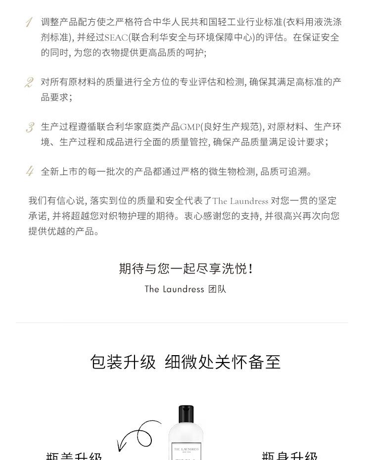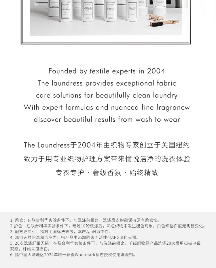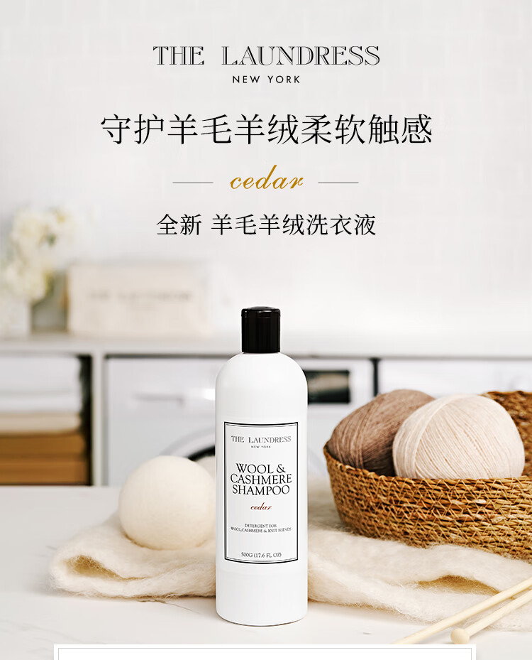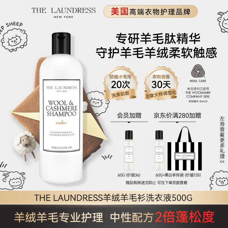 THE LAUNDRESS羊绒羊毛衫洗衣液中性洗涤剂500G缩水还原围巾大衣羽绒服蓬松美国