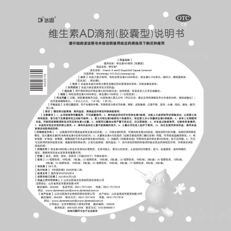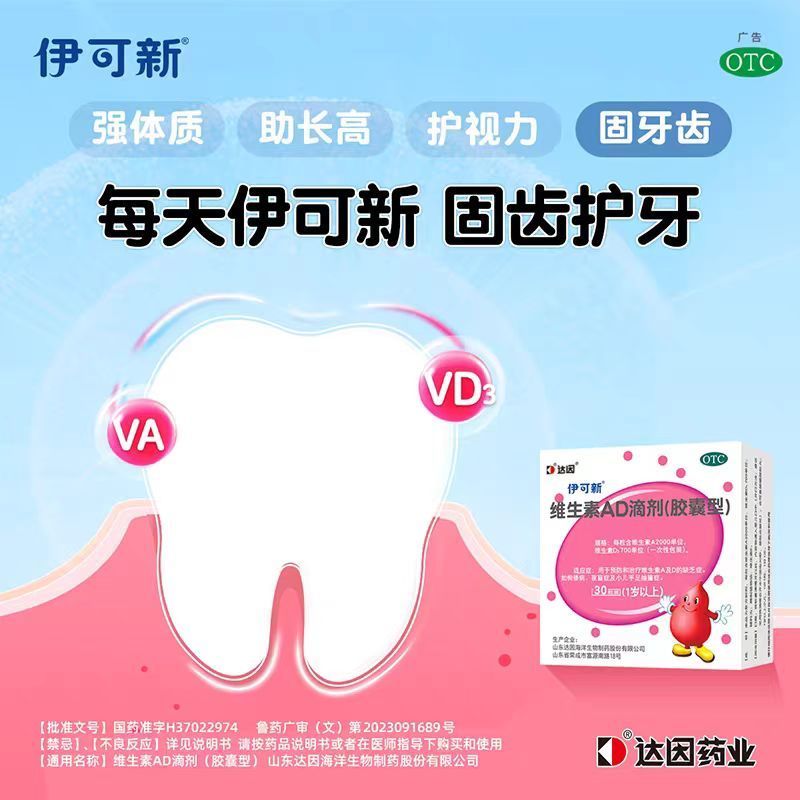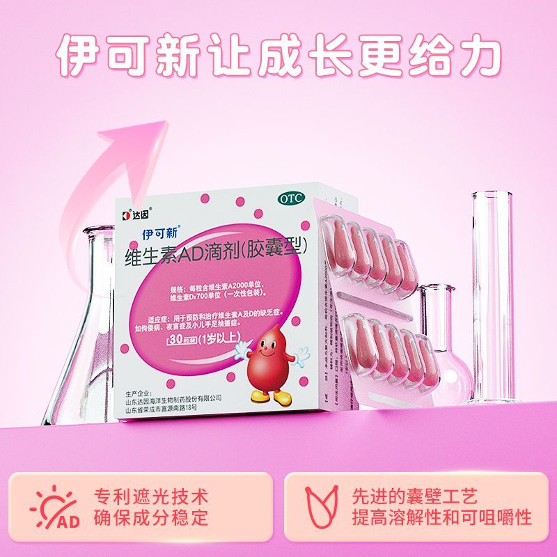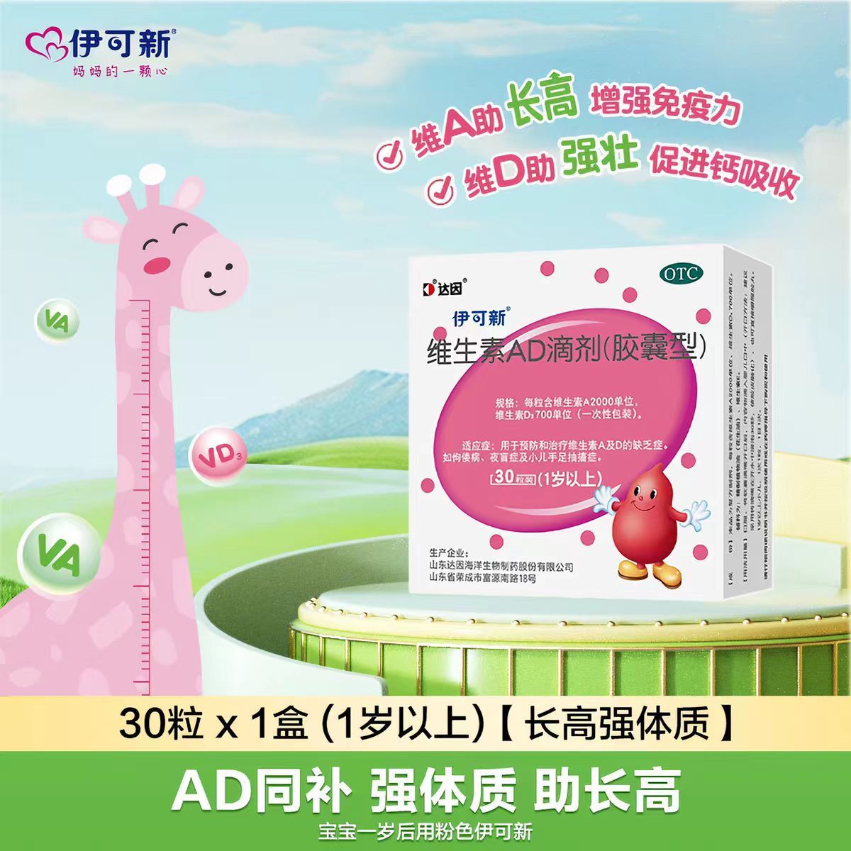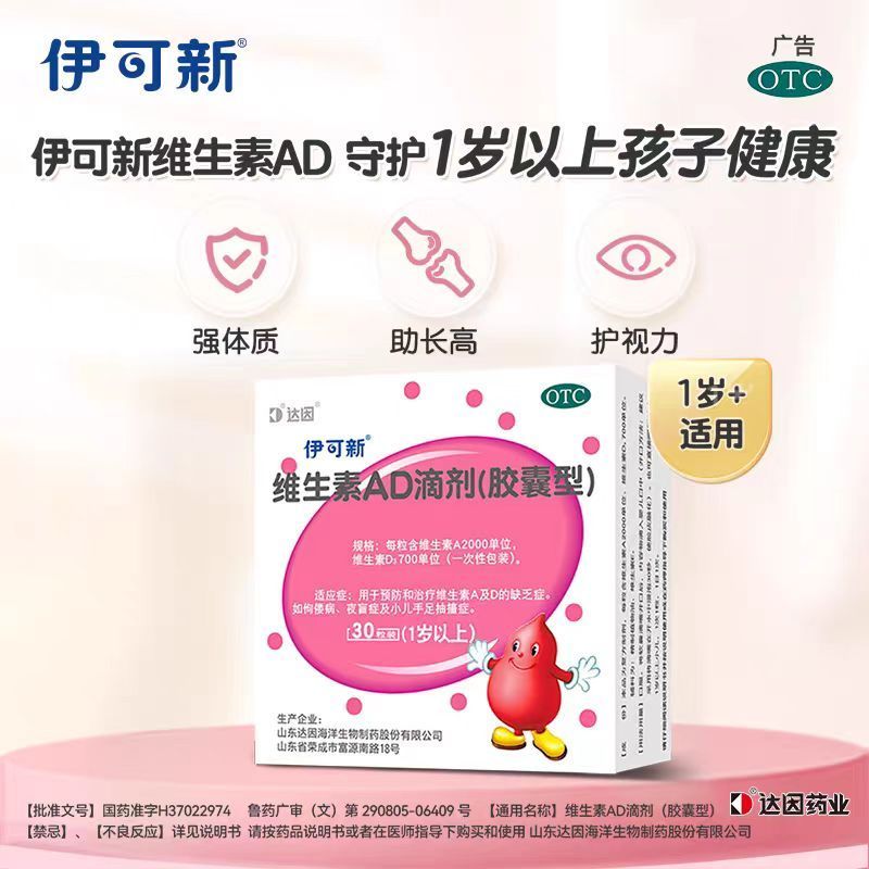 伊可新 维生素AD滴剂(胶囊型) 30粒/盒(一岁以上) 维生素ad儿童维生素a6到12岁维生素a儿童维d3补剂促钙吸收