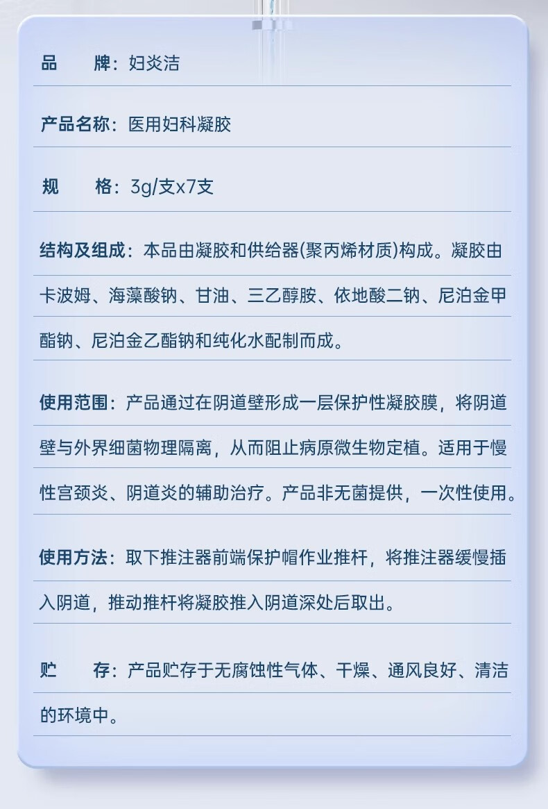 京东 妇炎洁医用妇科凝胶3g*7支抑菌宫颈炎糜烂阴道炎白带异味瘙痒私处护理 【宫颈炎阴道炎专用】1盒