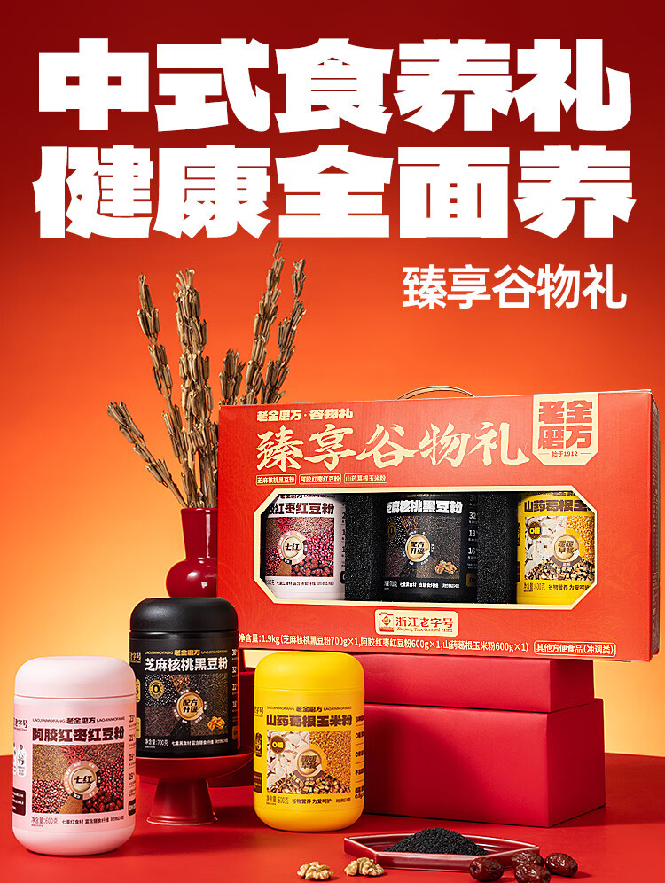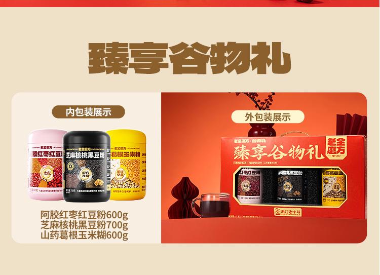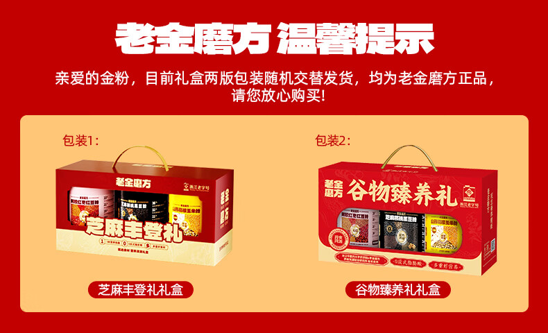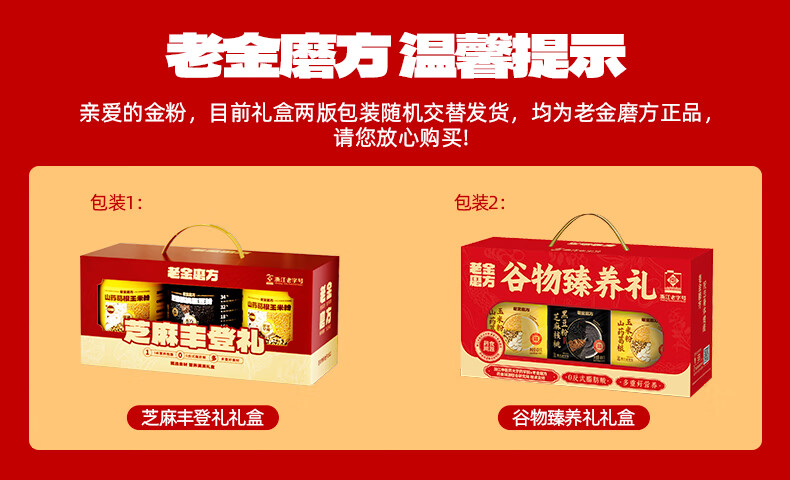 京东优惠券:老金磨方黑芝麻糊礼盒送礼过节礼品走亲戚长辈礼物滋补圣诞 【送礼首选】谷物臻养礼3罐/1.2kg王牌爆款
