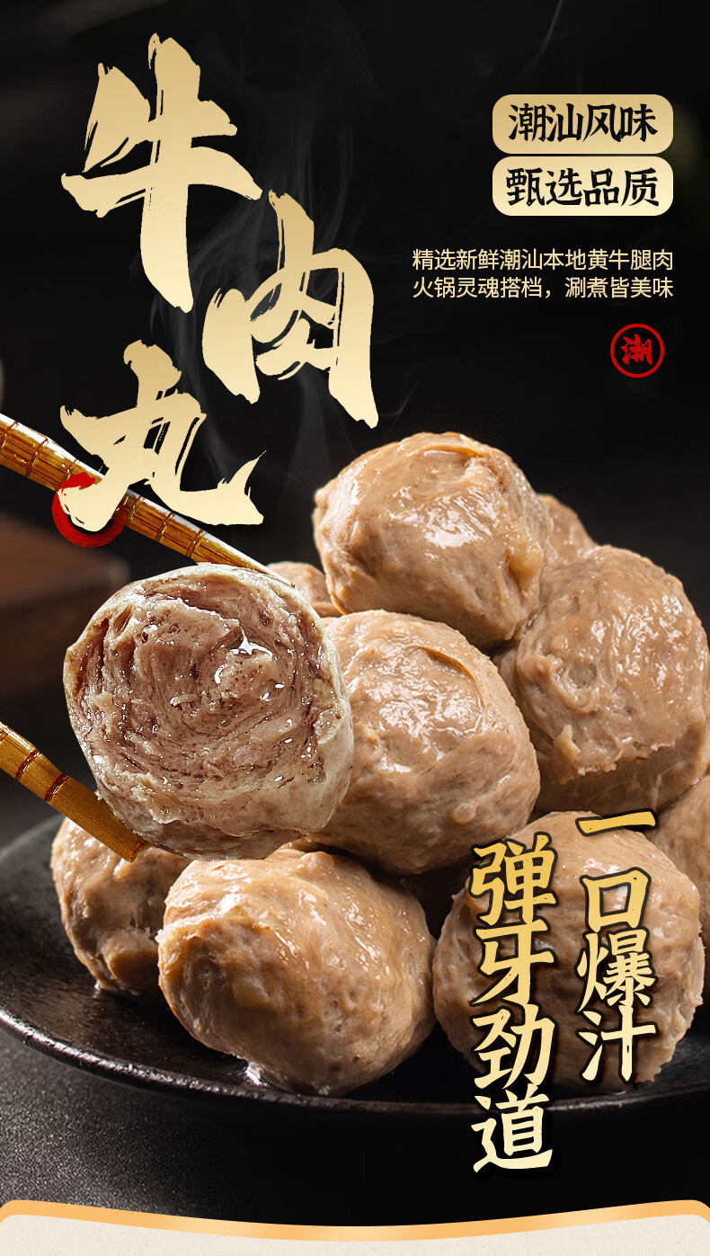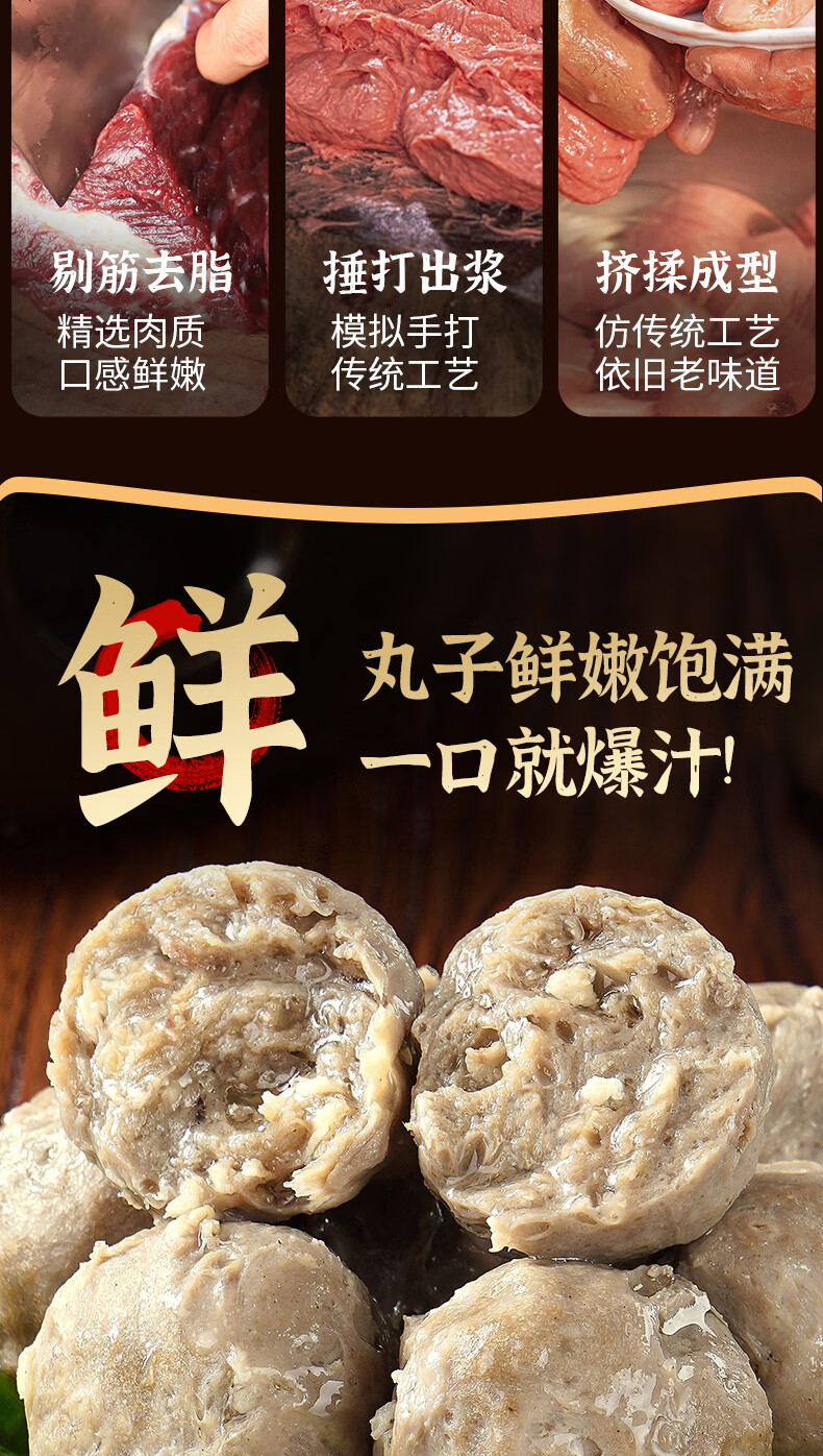 京东优惠券:牛凡匠潮汕牛肉丸手打正宗汕头牛筋丸特产火锅食材丸料关东煮麻辣烫食材 牛肉丸2斤(250g*4包)
