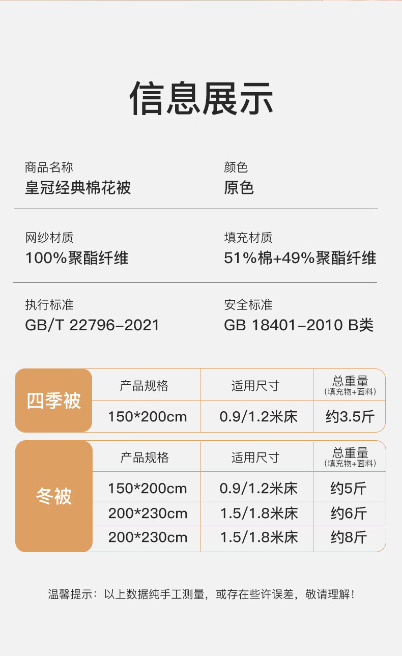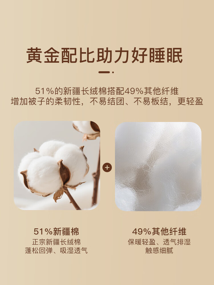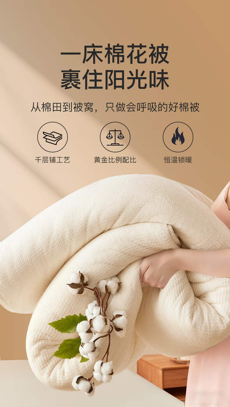 京东优惠券:皇冠被子冬季棉花被1.5米x2米新疆棉被褥子铺底单人冬天加厚冬被芯5斤